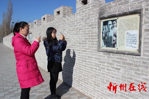 1月6日,山西農(nóng)業(yè)大學就讀的原平學子朱麗娟,利用在市新聞辦學習的機會,與學姐常璐來到該市崞陽鎮(zhèn)文化墻觀看續(xù)范亭將軍生平和毛澤東題詞的老照片。為了緬懷歷史,記住鄉(xiāng)愁,崞陽鎮(zhèn)搜集了40余幅抗日戰(zhàn)爭,解放戰(zhàn)爭時期的老照片,鑲嵌在文化墻上,供人們參觀。(曹申義 攝)