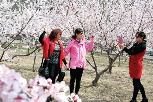 春回大地,萬物復蘇。三月三十一日,原平市桃花園內,市民盡情賞花拍照,留住春光,留住美好的瞬間。(趙春曉 攝)