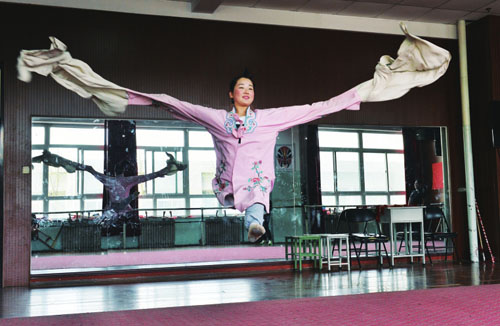 就是這個(gè)瀕臨消亡的劇種,卻仍有人在不懈地堅(jiān)持傳承著。太雨琴,一位22歲的忻州女孩,堅(jiān)持學(xué)習(xí)并演出北路梆子已經(jīng)10年之久了。她13歲時(shí)開始學(xué)習(xí)戲曲,憑借精湛的技藝,獲得了第十五屆全國(guó)少兒戲曲小梅花金獎(jiǎng)。她被北路梆子這個(gè)非遺劇種深深吸引著,唱、念、做、打,不知不覺中10年的光陰在練功房中度過(guò)。