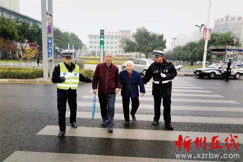 圖四:10 月15 日,交警在七一路與利民街十字路口引導(dǎo)行人過馬路