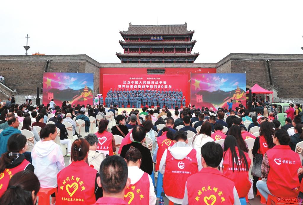 9月5日,由山西省文學(xué)藝術(shù)界聯(lián)合會(huì)指導(dǎo)、中共忻州市委宣傳部主辦、忻州市文學(xué)藝術(shù)工作者聯(lián)合會(huì)承辦的“唱響紅色經(jīng)典,凝聚奮進(jìn)力量”——紀(jì)念中國人民抗日戰(zhàn)爭暨世界反法西斯戰(zhàn)爭勝利80周年文藝展演在忻州古城北城門樓廣場舉行。(本報(bào)記者 張存良攝)