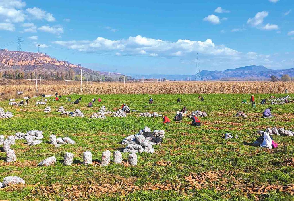 深秋的靜樂縣段家寨村,汾河岸邊的田野里一派熱火朝天的景象。村民們在翠綠的胡蘿卜纓間彎腰采收,一個個橙紅飽滿的胡蘿卜從泥土中“探”出頭來;不遠處的村口,駐村工作隊員正和村民們一起將打包好的胡蘿卜裝車,一輛輛貨車即將載著這份豐收的喜悅駛向遠方。今年,段家寨村迎來玉米、土豆、胡蘿卜大豐收,其中胡蘿卜產(chǎn)量突破200萬斤,成為村里增收的“金疙瘩”。