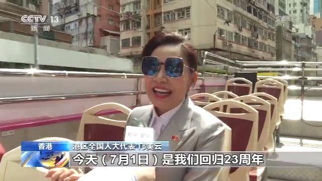 港區(qū)全國人大代表 鄺美云:今天(7月1日)是我們回歸23周年,迎來了國安立法,那很開心。因為對我們香港的市民來講,就是心目中有一種安定的感覺,國安、家安、民安、國泰民安,所以香港的明天一定會更好的。我覺得香港現(xiàn)在最重要的是能夠團結一致,然后我們有很多的機遇背靠祖國,面向世界。