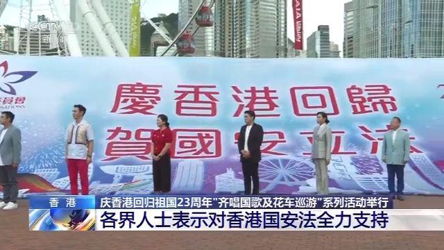 昨天(7月1日)上午,香港各界慶典委員會為慶祝香港回歸祖國23周年,舉辦“齊唱國歌及花車巡游”等系列活動,各界人士表達了對香港回歸祖國23周年的喜悅之情,以及對香港國安法的全力支持。
