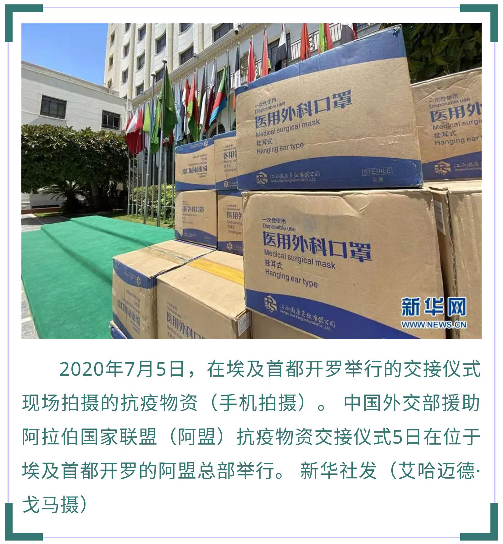 7月5日,中國外交部援助阿盟抗疫物資交接儀式在開羅舉行。中國駐埃及大使廖力強(qiáng)代表中國外交部向阿盟副秘書長胡薩姆·扎基移交了防護(hù)口罩。據(jù)廖力強(qiáng)介紹,新冠疫情暴發(fā)以來,中方向阿拉伯國家援助了大量物資,毫無保留地向阿拉伯國家分享抗疫經(jīng)驗(yàn)和技術(shù),同21個(gè)阿拉伯國家舉辦了衛(wèi)生專家視頻會(huì)議,向8個(gè)阿拉伯國家派遣了醫(yī)療組,同時(shí)協(xié)助阿拉伯國家在中國采購抗疫物資,支持阿拉伯國家有序復(fù)工復(fù)產(chǎn)。