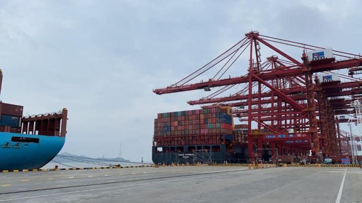 7月,寧波舟山港,一艘艘貨輪進(jìn)出繁忙,行駛得又穩(wěn)又快。又穩(wěn)又快的還有中國(guó)對(duì)外開(kāi)放的腳步。