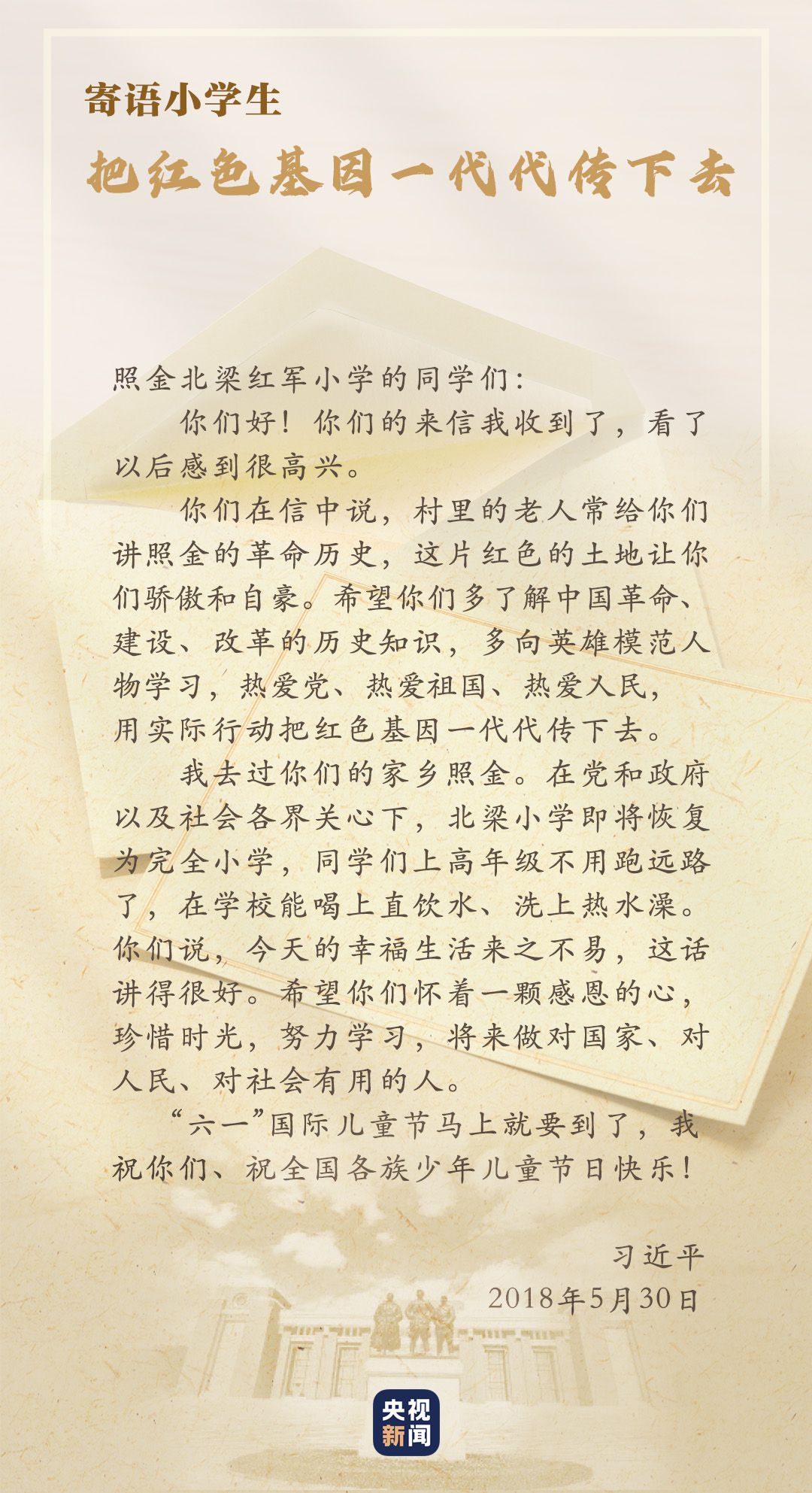 “教育很重要。革命老區(qū)、貧困地區(qū)要脫貧致富,從根兒上還是要把教育抓好,不能讓孩子輸在起跑線上。”總書(shū)記心里一直裝著老區(qū)人民,尤其關(guān)心下一代成長(zhǎng),要求把發(fā)展教育作為擺脫貧困的重要方式。 照金是陜甘邊革命根據(jù)地的中心。以前的北梁紅軍小學(xué)只有幾間土坯房,沒(méi)有自來(lái)水沒(méi)有暖氣,學(xué)生上學(xué)要爬坡過(guò)河走十幾里山路,冬天還得自帶小火盆取暖。如今,這里發(fā)生了翻天覆地的變化:路面硬化了,有了校車(chē)接送,孩子們上學(xué)不再難;學(xué)校有了自來(lái)水,師生喝上了清潔的直飲水;高年級(jí)學(xué)生有了宿舍,還能夠洗上熱水澡;學(xué)校還新招了一大批青年教師,個(gè)個(gè)都是大學(xué)生…… 校舍變新了,師資變強(qiáng)了,不變的是代代相傳的紅色基因??倳?shū)記的回信,激勵(lì)著這里的孩子傳承紅色基因,回報(bào)社會(huì),用光熱溫暖更多人,把愛(ài)傳遞出去。 △照金北梁紅軍小學(xué)學(xué)生 筆墨凝結(jié)真情意,鴻雁傳書(shū)表實(shí)感??倳?shū)記的諄諄話語(yǔ)、殷殷期待,激勵(lì)著全國(guó)人民齊心協(xié)力打贏脫貧攻堅(jiān)戰(zhàn),譜寫(xiě)美好生活新篇章。 視覺(jué)丨楊麗璇 資料丨張亞楠 (責(zé)任編輯:蔡文斌) |