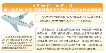 為加大我省通航產(chǎn)業(yè)招商引資力度,促進(jìn)山西通航短途運(yùn)輸、低空旅游、應(yīng)急救援、飛行培訓(xùn)等業(yè)務(wù)飛速發(fā)展,加快航空科技、航空制造、高新技術(shù)研發(fā)等創(chuàng)新企業(yè)落地山西,推動(dòng)全產(chǎn)業(yè)鏈通用航空業(yè)加快發(fā)展,在成功舉辦第一屆的基礎(chǔ)上,9月29日—10月2日,第二屆堯城(太原)國際通用航空飛行大會將在太原全新亮相。