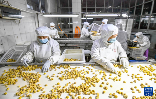12月16日,工人在河北省遵化市蘇家洼鎮(zhèn)的一家食品有限公司車(chē)間加工板栗。(新華社發(fā) 劉滿(mǎn)倉(cāng) 攝)
