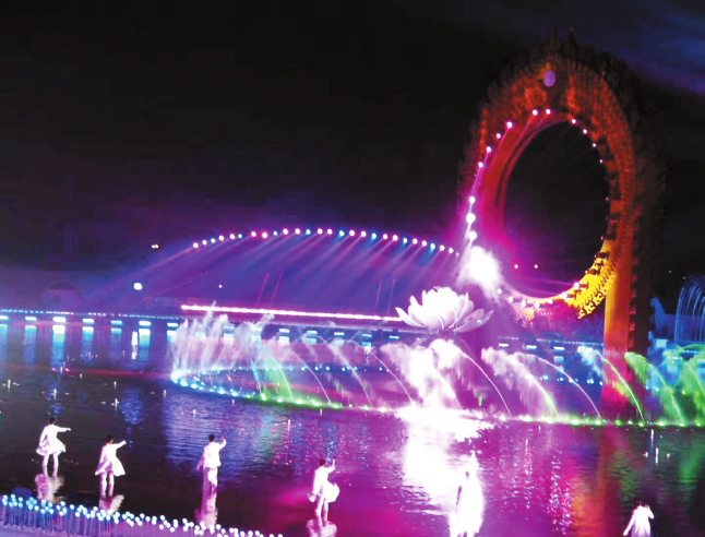 八月的傍晚,走進遺山公園,如同走進喧囂的海洋。人潮涌動,熙熙攘攘,笑聲、叫聲、音樂聲,此起彼伏;大人、孩童,自得其樂。隨著夜色降臨,游園人不見少,反而增多,所有人都在等待一個時刻,勢必要目睹那如同夢幻的精彩。