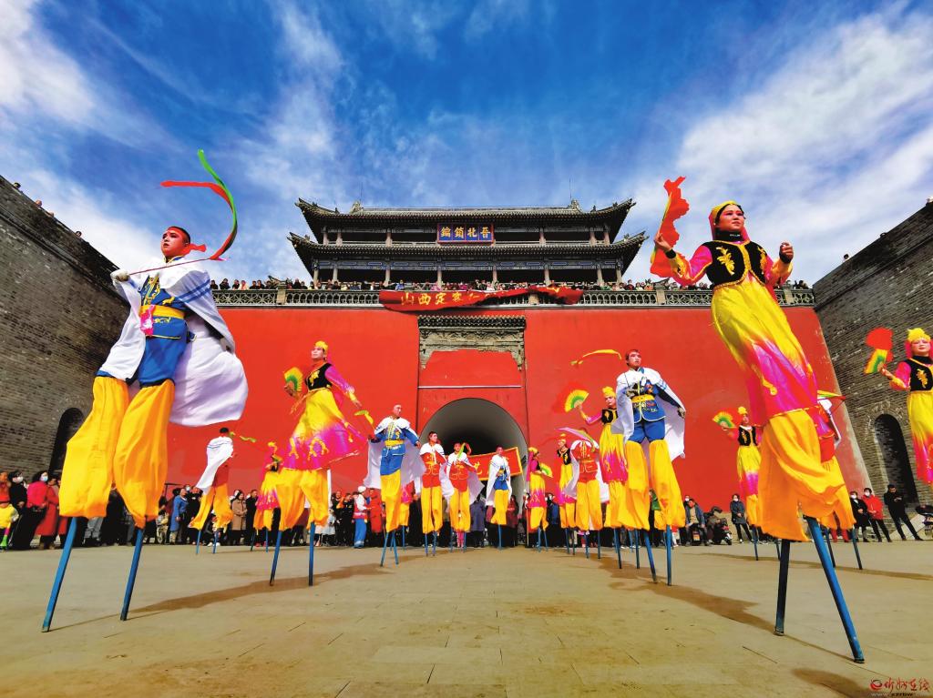 定襄社火和各類傳統(tǒng)民俗活動歷史悠久,各類極具地方特色的民俗文化活動觀賞性很強,二兔藝術團盡情舞動,表情歡悅;老干部藝術團鶴發(fā)童顏,精神抖擻;夢之藍旗袍隊舉止高雅,體態(tài)大方;紅燈籠高蹺隊腳踏雙木,輕松自如……有趣的互動,讓大家樂在其中。喜慶的樂曲,歡快的表演,充分展現(xiàn)了人民群眾的新生活、新風尚、新面貌,迎來觀眾一片喝彩聲,讓游客感受到了定襄的民俗文化魅力。(張存良 攝)