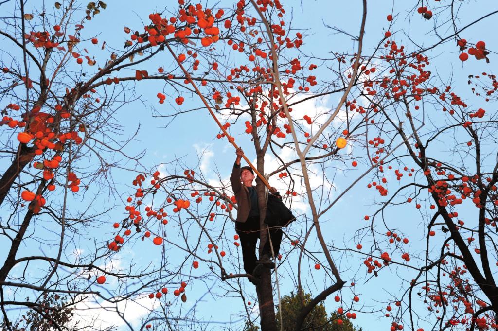 這個季節(jié),東峪便成為網(wǎng)紅打卡地,吸引了遠近無數(shù)的游人。這樣的美景,最宜天晴時靜賞,紅柿,藍天,冷暖相宜,濃淡有致,組成了一幅絕美的秋韻圖。這個季節(jié),也是農(nóng)戶的豐收季,一家人都出動,把柿子摘下,在院子里晾曬,滿院子甘甜美味,是煙火人間里最真切的幸福,心里也會生出喜悅和希望。(本報記者 聶艷英)