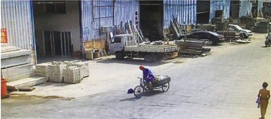 直到上午8點50分左右,一名騎著三輪車的男子經(jīng)過這里,下車查看后把包撿走了。“他穿著藍(lán)色的工作服,戴著個紅色的安全帽,把包打開看了下,然后就撿起來放到了車上?!?/p>