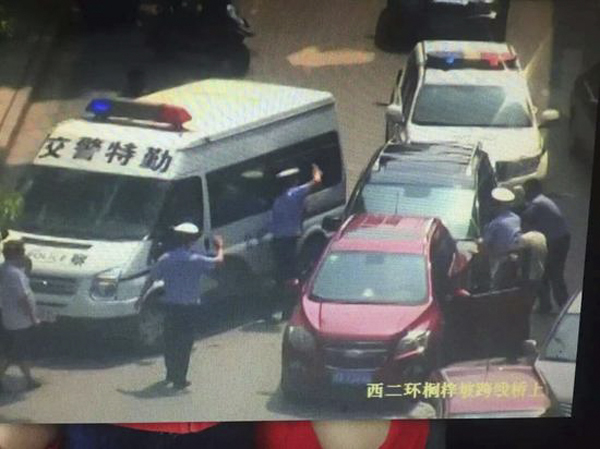 澎湃新聞從長沙市公安局交警部門了解到,事發(fā)12日下午1時(shí)許,當(dāng)民警對一臺(tái)由南往北行駛湘A27K07的黑色尼桑小型越野車進(jìn)行檢查時(shí),該駕駛?cè)司懿幌ɑ?,并緊閉車門、車窗,拒絕出示相關(guān)證件和下車配合接受酒精測試。約20分鐘后,駕駛?cè)送蝗粏?dòng)車輛強(qiáng)行沖關(guān),撞開民警、警車和周邊車輛后逃逸,造成1名民警(韌帶挫傷)、2名群眾受傷(皮外傷),1輛警車(刮擦)、9輛群眾車輛受損。