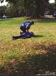一名目擊導(dǎo)游說:“剛才有兩個(gè)客人在悉尼草坪上方便,讓警察看見了。警察追他們,他們提著褲子跑。他們惱羞成怒,要打警察。警察一個(gè)過肩摔,把一個(gè)男的摔地上骨折了?,F(xiàn)在救護(hù)車,警車都過來了?!?/p>