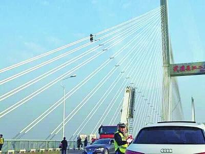 據(jù)武漢晚報(bào)13日?qǐng)?bào)道,12日下午1點(diǎn)半,一名六旬男子爬上湖北武漢長(zhǎng)江二橋斜拉索,離橋面約30米,聲稱(chēng)要跳橋。民警、消防趕到現(xiàn)場(chǎng)救援,僵持一個(gè)小時(shí)后,消防出動(dòng)云梯施救,方才將輕生男子救下接回橋面。這起事故導(dǎo)致二橋和漢口、武昌多處道路交通擁堵近3個(gè)小時(shí),直至昨天下午5點(diǎn),交通才恢復(fù)正常。
