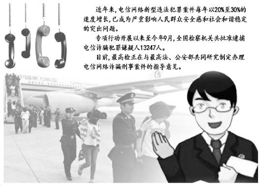 《法制日報》記者從最高人民檢察院與公安部近日聯(lián)合召開的電信網(wǎng)絡新型違法犯罪重點整治、突出地區(qū)督導會上了解到,被掛牌的7個重點地區(qū)和5個突出地區(qū)檢察機關(guān)積極主動作為,出重拳、下重手、用重典,快速批捕起訴了一批有震動、有影響的重大電信網(wǎng)絡詐騙犯罪案件,取得了初步成效。據(jù)統(tǒng)計,專項行動開展以來至今年9月,全國檢察機關(guān)共批準逮捕電信詐騙犯罪嫌疑人13247人。