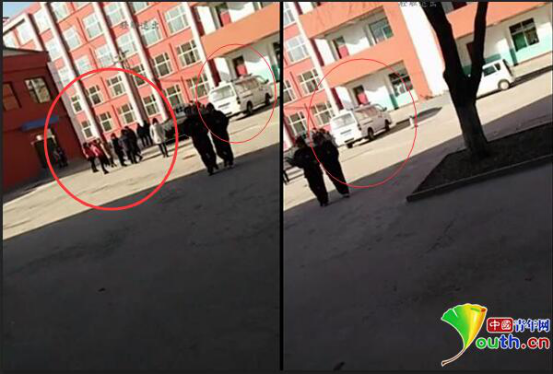 23日上午,當(dāng)?shù)乜h醫(yī)院救護(hù)車來(lái)到學(xué)校,醫(yī)生為在宿舍的學(xué)生挨個(gè)進(jìn)行相關(guān)檢查。同時(shí)一些學(xué)生家長(zhǎng)也到校了解情況。(爆料者供圖)