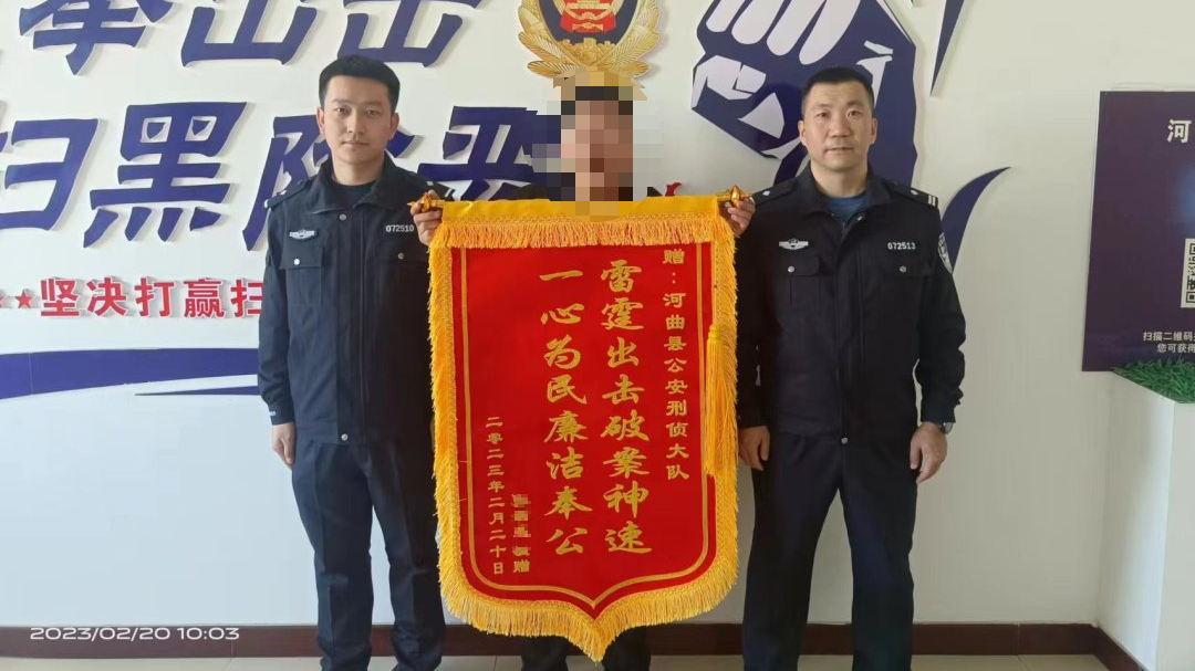 “雷霆出擊破案神速,一心為民廉潔奉公?!?023年2月20日,張先生親自將一面錦旗送到河曲縣公安局民警手中,感激之情溢于言表。