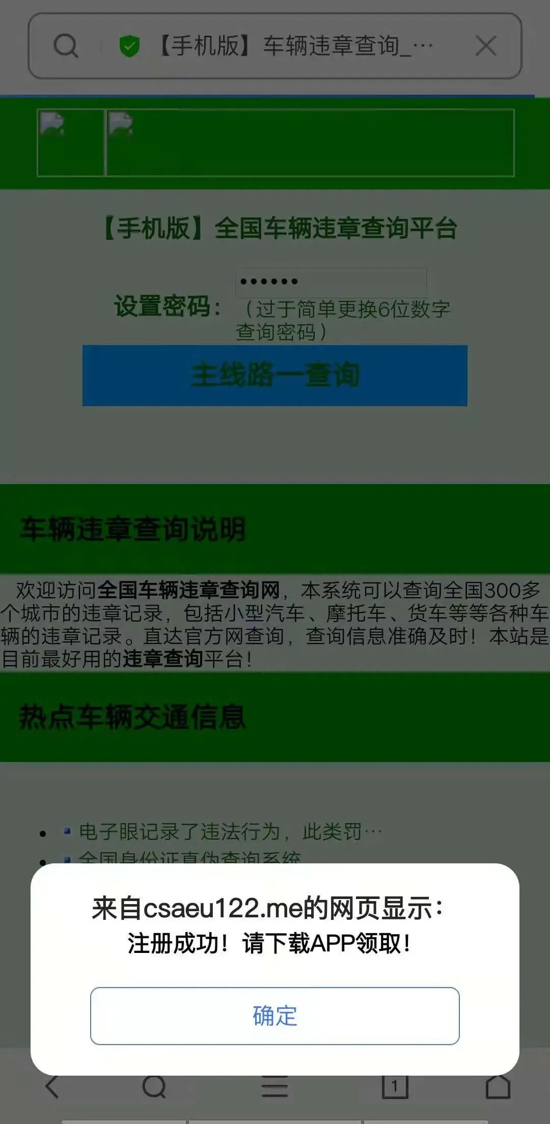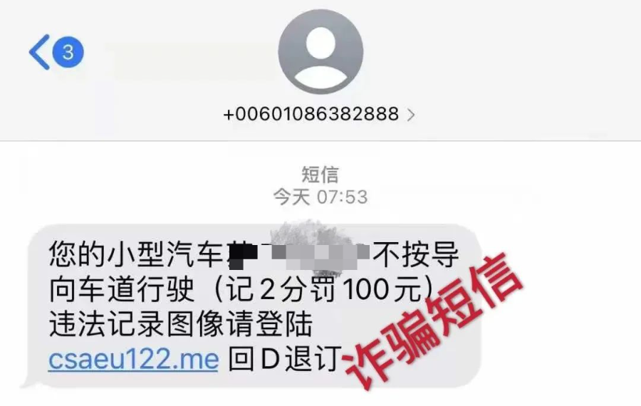 第一步:獲取信息。不法分子通過(guò)不正當(dāng)?shù)氖侄潍@取到受害者及車輛信息,然后通過(guò)改號(hào)軟件給車主發(fā)送“違章”的詐騙短信,并在短信中附上虛假網(wǎng)站的網(wǎng)址鏈接。