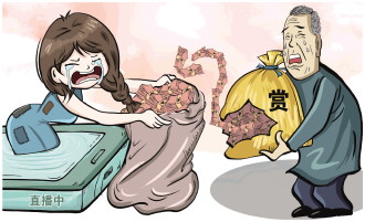 《真哭假哭》 作者/李曉軍 ● 主播們的“花式”索要打賞方式,最普遍的是直接索要禮物,即主播在直播間直接向老年粉絲索要禮物,或者通過(guò)直播PK的形式誘導(dǎo)老年粉絲打賞 ● 一些針對(duì)老年人的直播滿(mǎn)足了他們的情感需求,從而獲得了老年人的關(guān)注和互動(dòng)甚至是打賞,反映了老年人需要精神寄托的緊迫現(xiàn)實(shí) ● 直播平臺(tái)應(yīng)該擔(dān)負(fù)起與其盈利相對(duì)等的社會(huì)責(zé)任,建議對(duì)于判斷能力弱、認(rèn)知能力衰退的老人設(shè)置相應(yīng)的退款機(jī)制 “唱歌是在對(duì)口型,跳舞也只是稍微扭一扭,整個(gè)直播畫(huà)面毫無(wú)美感,可我爸就是喜歡。”四川成都市民高鳳(化名)這樣描述父親“鐘愛(ài)”的一位女主播的直播間場(chǎng)景。 高鳳告訴《法治日?qǐng)?bào)》記者,僅2022年,其父親就在直播間打賞這位女主播超過(guò)6萬(wàn)元,而女主播的方式無(wú)非是直接向父親索要禮物,或者通過(guò)直播PK誘導(dǎo)父親打賞。 近年來(lái),像高鳳父親這樣使用短視頻平臺(tái)的老年人越來(lái)越多,其中“為愛(ài)發(fā)電”甚至沉迷向主播打賞大額資金者不在少數(shù)。記者調(diào)查發(fā)現(xiàn),話(huà)語(yǔ)誘導(dǎo)、提供好處、營(yíng)造“人設(shè)”等是主播誘導(dǎo)老年人直播打賞的常用“手段”。 受訪專(zhuān)家認(rèn)為,老年人被誘導(dǎo)打賞主播,既有他們?yōu)檎业角楦屑耐卸试父顿M(fèi)的因素,也有孤獨(dú)生活拉低他們心理防線(xiàn)的因素,還有短視頻平臺(tái)缺乏類(lèi)似“青少年”模式預(yù)防機(jī)制的因素。解決這一問(wèn)題,既需要家庭和子女給老年人應(yīng)有的關(guān)愛(ài),也需要短視頻平臺(tái)加強(qiáng)監(jiān)管,針對(duì)判斷力弱、認(rèn)知能力衰退的老年人設(shè)置相應(yīng)模式,讓老年人遠(yuǎn)離大額直播打賞。 老年人易沉迷直播打賞 背后是情感需求被漠視 在高鳳的印象中,父親幾年前開(kāi)始在某短視頻平臺(tái)上看直播,2021年時(shí),大概一個(gè)月花幾百上千元在直播間給主播刷一些小禮物??锤赣H給主播刷小禮物很高興,高鳳作為女兒也就沒(méi)有過(guò)多干涉。 后來(lái),高鳳發(fā)現(xiàn)父親在直播間的等級(jí)越來(lái)越高,“一下子便警惕起來(lái)”。今年過(guò)年期間,她查詢(xún)父親的打賞記錄時(shí)呆住了,過(guò)去一年,父親打賞了多位女主播,“其中他最‘鐘愛(ài)’的女主播,打賞金額總共超過(guò)6萬(wàn)元”。 “我覺(jué)得他走火入魔了?!备啉P向記者講述經(jīng)過(guò)時(shí),連連嘆氣。 北京市豐臺(tái)區(qū)居民劉平怎么也沒(méi)想到,父親劉峰(化名)竟然沉迷直播打賞,半年時(shí)間將3萬(wàn)元退休金打賞一空。 今年年初,劉峰注冊(cè)了某短視頻平臺(tái)的賬號(hào)后,沉迷于在平臺(tái)上觀看主播直播并打賞。今年7月份,因?yàn)樾枰≡褐委?,劉峰才發(fā)現(xiàn)自己的銀行卡余額少了3萬(wàn)多元。而直到兒子將打印的銀行流水放到其面前時(shí),他仍喃喃道:“就刷了幾次‘禮物’,怎么可能花了這么多?” 近日,坐擁上千萬(wàn)粉絲、素有“中老年女性收割機(jī)”之稱(chēng)的主播“秀才”,其短視頻賬號(hào)因違反平臺(tái)相關(guān)規(guī)定被封禁。公開(kāi)報(bào)道顯示,在“秀才”的粉絲當(dāng)中,不乏打賞金額十幾萬(wàn)元甚至幾十萬(wàn)元的“真愛(ài)粉”。 是什么讓那么多老年人沉迷于平臺(tái)觀看主播直播并打賞? 為了解開(kāi)心中的疑團(tuán),高鳳在父親打賞的直播間里蹲守了一個(gè)星期,發(fā)現(xiàn)了主播們“花式”索要打賞的方式。其中最普遍的是直接索要禮物,即主播在直播間直接向老年粉絲索要禮物,或者通過(guò)直播PK的形式誘導(dǎo)老年粉絲打賞。 打造一個(gè)讓人心疼的故事和“人設(shè)”,也是方式之一。據(jù)高鳳介紹,那名女主播說(shuō)自己離異后獨(dú)自帶兩個(gè)孩子,邊打工邊撫養(yǎng)孩子,讓自己的父親心生憐憫。同樣家有沉迷直播間老年人的山東人王女士告訴記者,父親在提及為什么打賞幾萬(wàn)元時(shí)可謂振振有詞——“你懂什么,她(女主播)有心臟病,我這是看她可憐”。 “我父親除了在直播間打賞,還加了女主播的社交賬號(hào)。他們經(jīng)常視頻,女主播會(huì)讓我爸給她拉票?!备啉P說(shuō),這讓她父親覺(jué)得自己被需要,每次看直播時(shí)還通知認(rèn)識(shí)的老年人幫忙刷各種人氣票。 在高鳳看來(lái),老年人沉迷其中后果嚴(yán)重,“對(duì)于自己的勸阻,父親甚至要和我斷絕父女關(guān)系,差點(diǎn)不認(rèn)我這個(gè)女兒了”。 梁州(網(wǎng)名)是社交平臺(tái)上一位知識(shí)型博主,她曾在一家MCN公司負(fù)責(zé)虛擬主播業(yè)務(wù)。在她看來(lái),在老年粉絲心目中,最被吸引的原因,還是主播提供的情感價(jià)值,只是這種價(jià)值需要金錢(qián)供養(yǎng)。 梁州曾注冊(cè)一個(gè)匿名賬號(hào)登錄老年人集體連麥聊天的直播間,聊天內(nèi)容也很尋常:今天喝的什么茶?路好走不好走?下雨了,千萬(wàn)別出門(mén),鞋子會(huì)沾上泥。 “這些話(huà),很多老年人在家里肯定聽(tīng)不到子女說(shuō)。”梁州說(shuō),他們需要陪伴。 北京師范大學(xué)心理學(xué)部教授彭華茂做了多年老年人心理認(rèn)知研究。
