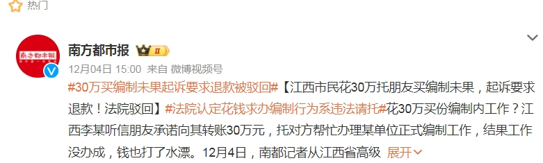 #30萬(wàn)買(mǎi)編制未果起訴要求退款被駁回#