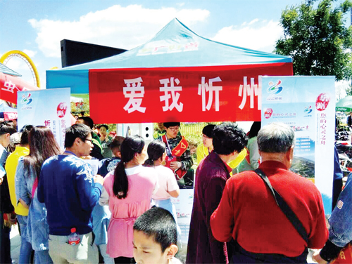 5 月15 日,忻州青年志愿者服務協(xié)會、愛心公益聯(lián)盟、忻州師院志工部的愛心人士,人員一起來到云中河景區(qū)晉忻夢幻樂園門前,開展“愛我忻州、為家鄉(xiāng)投票”活動,為我市“申旅”助力。活動現(xiàn)場吸引了眾多游客,大家紛紛拿出手機,為美麗的家鄉(xiāng)投票。圖為投票活動現(xiàn)場。(張志遠 攝)