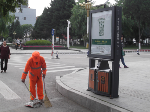6月4日太陽能果皮箱亮相原平市街道兩旁。該市引進的新型太陽能環(huán)保亮化分類果皮箱,帶有太陽能發(fā)電,晚上自動亮燈照明,方便垃圾處理、回收利用,受到群眾歡迎。(趙春曉 攝)
