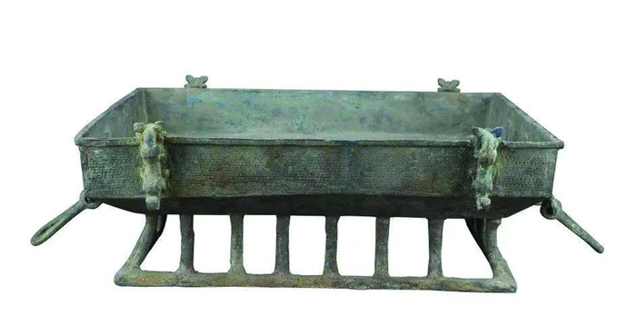 到商周時(shí)期,隨著生產(chǎn)力的進(jìn)步和生產(chǎn)資料的豐富,燒烤的方法也開始升級,烤肉有了專門的稱法“炙”,《禮記》記載:“炙,貫之火上也?!币簿褪前讶獯饋矸旁诨鹕蠠2贿^那時(shí)候的燒烤是貴族專供,也是祭祀用品,比如在戰(zhàn)國早期的曾侯乙墓中,曾出土過一件燒烤器,由上盤下爐組成,爐作淺盤形,敞口平底,下有三足,出土?xí)r爐內(nèi)尚有十幾塊未燒過的木炭,曾侯乙的日常菜譜中多半也有烤肉這么一道菜。