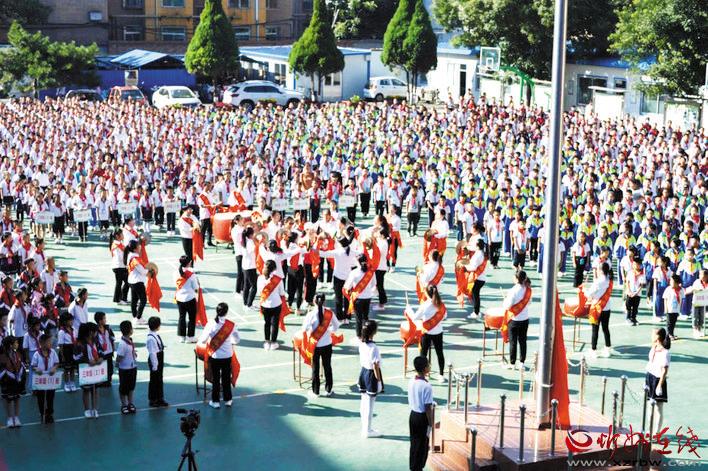 “老師,您辛苦了!”活動(dòng)現(xiàn)場,少先隊(duì)員為前來上課的老師們以及馬路邊維持交通秩序的交警叔叔、護(hù)學(xué)崗志愿者鞠躬敬禮并戴上鮮艷的紅領(lǐng)巾,表達(dá)了同學(xué)們對(duì)老師、對(duì)長輩最誠摯的敬意?!爸x謝孩子們,這是我們應(yīng)該做的。祝同學(xué)們健康成長!”老師、叔叔阿姨回以鼓勵(lì)的話語。大會(huì)對(duì)學(xué)校師德標(biāo)兵、模范教師、優(yōu)秀班主任、先進(jìn)工作者進(jìn)行了表彰。