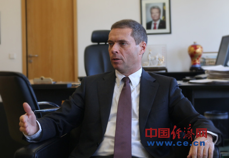 采訪結(jié)束后,中國經(jīng)濟(jì)網(wǎng)記者向柯慕賢介紹中國國家重點(diǎn)新聞媒體的基本情況??釔坶L跑的柯慕賢工作起來就像德國的汽車,馬力十足。性格穩(wěn)重的他半開玩笑地告訴記者,對德國人來說,壓力是塊寶,壓力帶來動(dòng)力。中國經(jīng)濟(jì)網(wǎng)記者 劉若星 攝