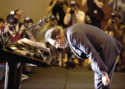5月2日,在韓國(guó)首爾,利潔時(shí)韓國(guó)子公司負(fù)責(zé)人阿塔爾·薩夫達(dá)爾在記者會(huì)上鞠躬道歉。 英國(guó)日用品公司利潔時(shí)韓國(guó)子公司2日在首爾召開(kāi)記者會(huì),就“加濕器殺菌劑致死事件”向韓國(guó)國(guó)民道歉并提出賠償方案。2011年韓國(guó)有多人因罹患不明原因的肺病而死亡,一度在韓國(guó)社會(huì)引發(fā)恐慌。韓國(guó)保健福祉部疾病管理本部經(jīng)調(diào)查后認(rèn)定,加濕器殺菌劑是導(dǎo)致不明肺病的元兇。 新華社/美聯(lián)