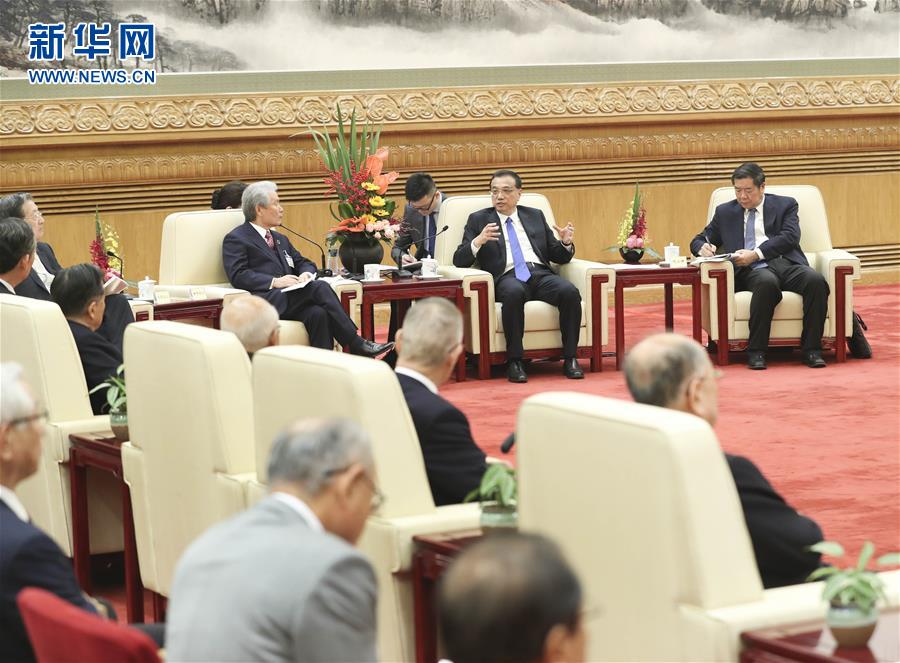 11月21日,國務(wù)院總理李克強(qiáng)在北京人民大會(huì)堂會(huì)見日本經(jīng)濟(jì)團(tuán)體聯(lián)合會(huì)會(huì)長榊原定征、日中經(jīng)濟(jì)協(xié)會(huì)會(huì)長宗岡正二、日本商工會(huì)議所會(huì)長三村明夫率領(lǐng)的日本經(jīng)濟(jì)界代表訪華團(tuán)并同他們座談。新華社記者 龐興雷 攝