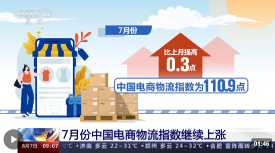 7月份中國電商物流指數(shù)為110.9點,比上月小幅提高0.3個點。供給端各項指數(shù)表現(xiàn)良好,其中,物流時效指數(shù)、滿意率指數(shù)、履約率指數(shù)和人員指數(shù)連續(xù)回升。