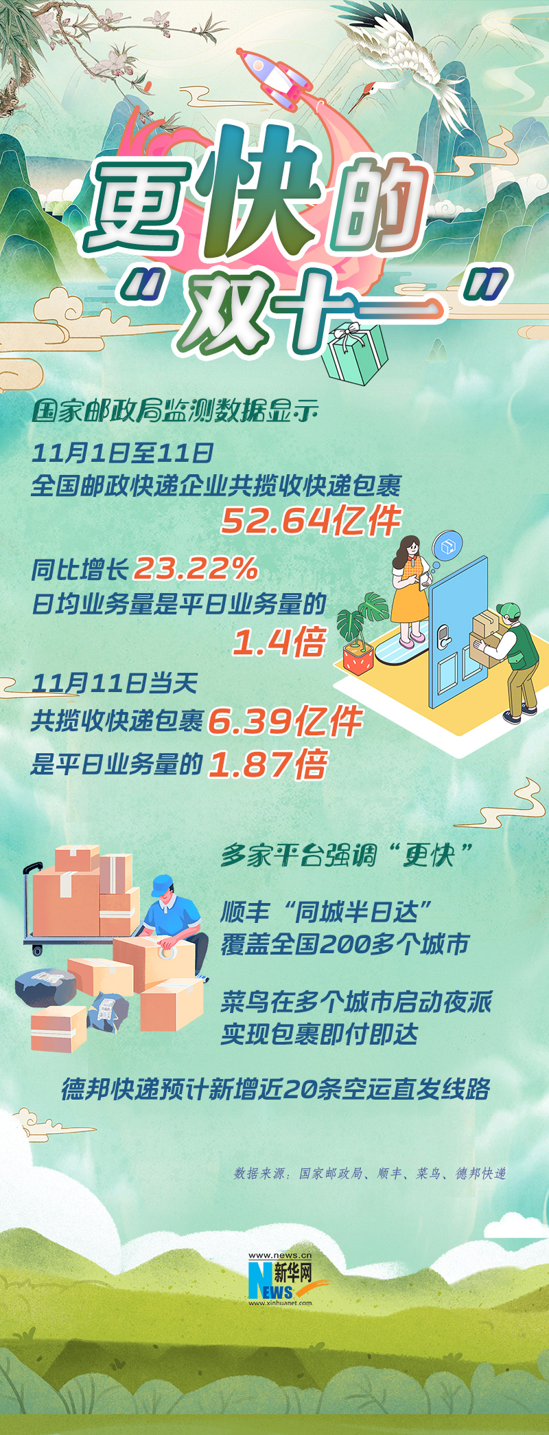 快遞量級(jí)展現(xiàn)向好趨勢(shì)。國家郵政局11月12日發(fā)布數(shù)據(jù),2023年11月1日至11日,全國郵政快遞企業(yè)共攬收快遞包裹52.64億件,同比增長(zhǎng)23.22%,日均業(yè)務(wù)量是平日業(yè)務(wù)量的1.4倍。11月11日當(dāng)天,共攬收快遞包裹6.39億件,是平日業(yè)務(wù)量的1.87倍,同比增長(zhǎng)15.76%。