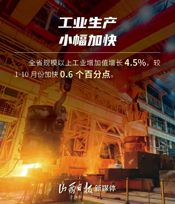 12月20日,省統(tǒng)計局發(fā)布1至11月份山西經(jīng)濟運行情況。1至11月份,山西扎實推動高質(zhì)量發(fā)展,穩(wěn)增長政策效應(yīng)持續(xù)釋放,主要指標增勢良好,工業(yè)生產(chǎn)小幅加快,消費市場穩(wěn)步復(fù)蘇,就業(yè)物價總體平穩(wěn),經(jīng)濟運行穩(wěn)中向好。一組海報了解1至11月山西經(jīng)濟成績單。