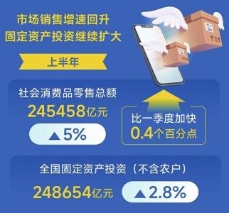 市場銷售增速回升,固定資產(chǎn)投資繼續(xù)擴(kuò)大。上半年,社會消費(fèi)品零售總額245458億元,同比增長5%,比一季度加快0.4個(gè)百分點(diǎn)。全國固定資產(chǎn)投資(不含農(nóng)戶)248654億元,同比增長2.8%;扣除房地產(chǎn)開發(fā)投資,全國固定資產(chǎn)投資增長6.6%。
