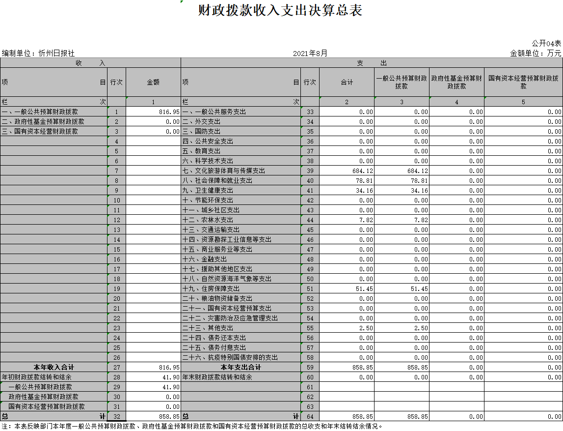 (三)部門決算單位構(gòu)成:忻州日報社是一級預(yù)算單位,無下屬單位。部門預(yù)算只有一個單位,即忻州日報社。