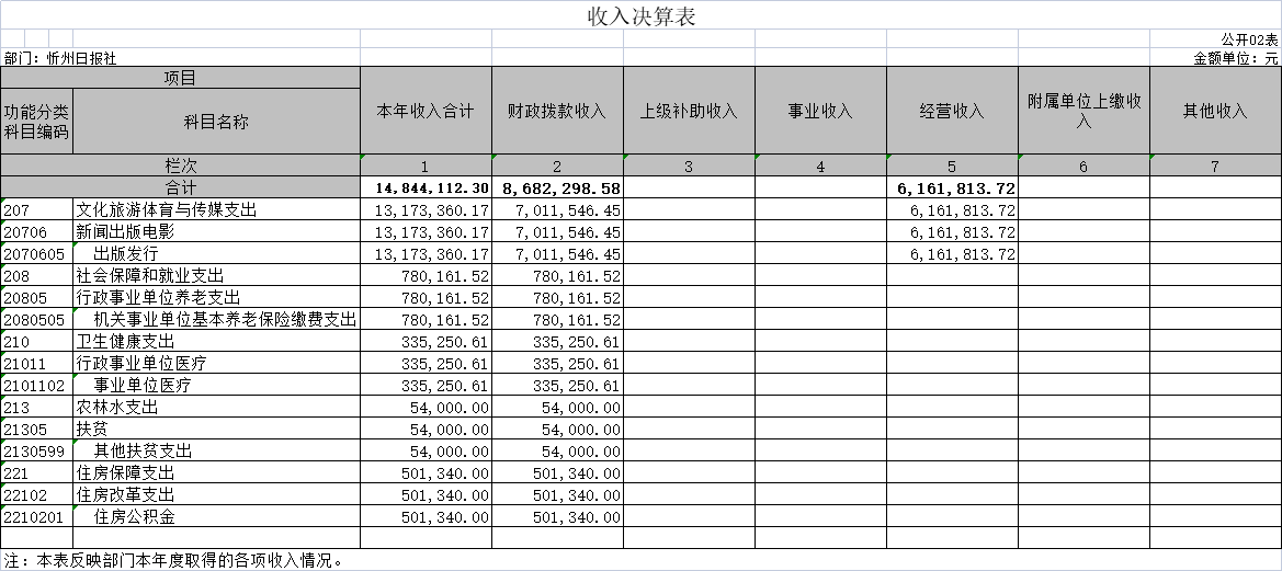 二、收入決算表