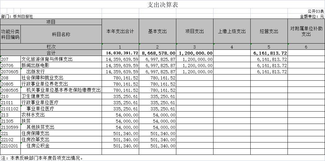 說明:忻州日?qǐng)?bào)社沒有使用政府性基金預(yù)算安排的支出,故本表無數(shù)據(jù)。