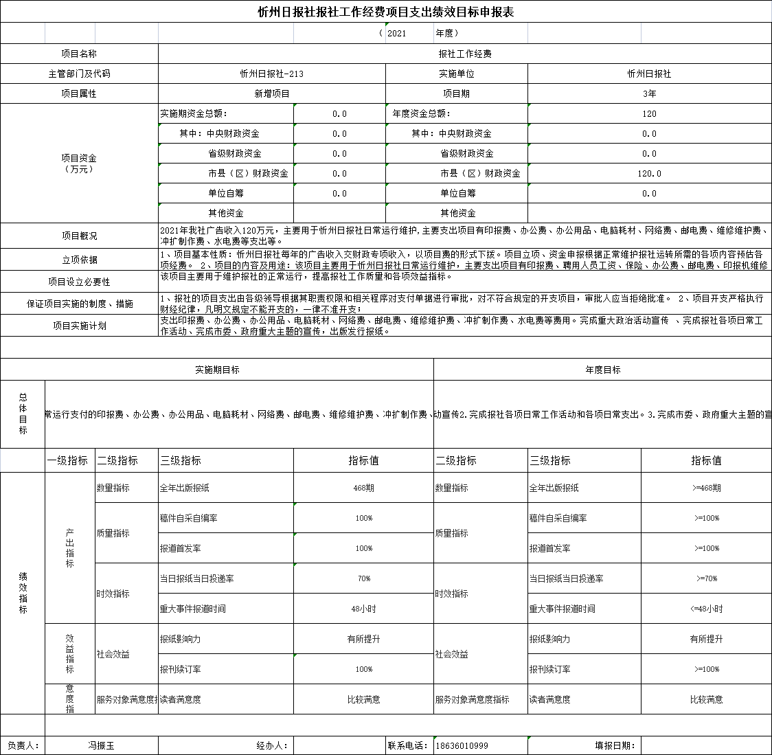一、2021年忻州日?qǐng)?bào)社績(jī)效目標(biāo)申報(bào)表