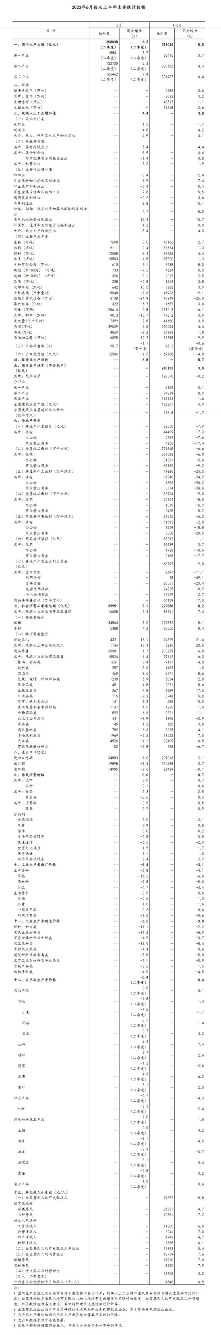 (1)國(guó)內(nèi)生產(chǎn)總值及其分類(lèi)項(xiàng)目增長(zhǎng)速度按不變價(jià)計(jì)算,規(guī)模以上工業(yè)增加值及其分類(lèi)項(xiàng)目增長(zhǎng)速度按可比價(jià)計(jì)算,均為實(shí)際增長(zhǎng)速度;其他指標(biāo)除特殊說(shuō)明外,按現(xiàn)價(jià)計(jì)算,為名義增長(zhǎng)速度。