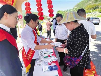 福建省福清市一家保險機構(gòu)在石竹山景區(qū)向游客宣傳保險知識。 盧燕 攝