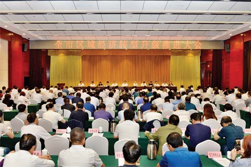 會(huì)議指出,要在六方面做好轉(zhuǎn)型升級(jí)工作。第一,在規(guī)劃與指導(dǎo)上,要把握高度,突出精度。必須清醒地把握轉(zhuǎn)型升級(jí)的大背景、大趨勢(shì),全市上下要強(qiáng)化不轉(zhuǎn)沒出路、慢轉(zhuǎn)就落后的理念,必須準(zhǔn)確把握轉(zhuǎn)型升級(jí)的新標(biāo)準(zhǔn)、新要求,始終堅(jiān)持轉(zhuǎn)型為綱、產(chǎn)業(yè)為王、創(chuàng)新為上、改革為要,要做大優(yōu)勢(shì),補(bǔ)齊短板。必須加強(qiáng)和改善黨對(duì)經(jīng)濟(jì)工作的領(lǐng)導(dǎo),將轉(zhuǎn)型升級(jí)內(nèi)容納入市委常委會(huì)1+3季度經(jīng)濟(jì)運(yùn)行分析制度,做到底清數(shù)明、精準(zhǔn)指導(dǎo)。第二,在產(chǎn)業(yè)和項(xiàng)目上,要突出轉(zhuǎn)型、推動(dòng)轉(zhuǎn)型。核心要在六大主戰(zhàn)場(chǎng)主陣地,突出新動(dòng)能培育、新技術(shù)應(yīng)用、新產(chǎn)品開發(fā)。要緊盯產(chǎn)業(yè)項(xiàng)目不放,緊盯相關(guān)指標(biāo)不放,緊盯落后的縣(市、區(qū))和部門不放,大力推動(dòng)支柱產(chǎn)業(yè)轉(zhuǎn)型升級(jí),大力推動(dòng)開發(fā)區(qū)轉(zhuǎn)型升級(jí),大力推動(dòng)民營(yíng)經(jīng)濟(jì)轉(zhuǎn)型升級(jí)。要把功夫下在招商引資、招財(cái)引智和項(xiàng)目落地上。要落實(shí)責(zé)任制,將縣細(xì)化到干部和崗位。第三,在協(xié)調(diào)與環(huán)境上,要深化改革、擴(kuò)大開放。要堅(jiān)持以改革促轉(zhuǎn)型,堅(jiān)持以開放促轉(zhuǎn)型,堅(jiān)持以環(huán)保倒逼轉(zhuǎn)型,堅(jiān)持以環(huán)境保障轉(zhuǎn)型。第四,在市場(chǎng)與人才上,要激活主體,突出創(chuàng)新。要以更大力度推進(jìn)創(chuàng)新發(fā)展,補(bǔ)齊我市創(chuàng)新驅(qū)動(dòng)短板,要發(fā)揮市場(chǎng)主導(dǎo)作用,強(qiáng)化企業(yè)主體地位和科技人才的主力作用,在新一輪的人才大戰(zhàn)中有所作為,引導(dǎo)創(chuàng)新要素向企業(yè)集聚。要全面深化企業(yè)改革,扎實(shí)推進(jìn)國(guó)企改革和轉(zhuǎn)型升級(jí)。要為企業(yè)家放心干、放膽干、放手干撐腰做主,要發(fā)揮金融在區(qū)域經(jīng)濟(jì)轉(zhuǎn)型中的發(fā)動(dòng)機(jī)、產(chǎn)業(yè)升級(jí)中的推進(jìn)器作用,切實(shí)激發(fā)活力。第五,在責(zé)任與擔(dān)當(dāng)上,要強(qiáng)化主責(zé),聚焦主業(yè)。要認(rèn)真貫徹落實(shí)中辦印發(fā)的《關(guān)于進(jìn)一步激勵(lì)廣大干部新時(shí)代新?lián)?dāng)新作為的意見》,全面落實(shí)習(xí)近平總書記關(guān)于“三個(gè)區(qū)分開來”的重要要求,旗幟鮮明為敢于擔(dān)當(dāng)?shù)母刹繐窝膭?。市縣黨委、政府班子成員對(duì)轉(zhuǎn)型升級(jí)要做到指標(biāo)到人、臺(tái)賬管理、動(dòng)態(tài)調(diào)控、年底交賬,并作為領(lǐng)導(dǎo)班子和領(lǐng)導(dǎo)干部年度民主生活會(huì)對(duì)照檢查的重要內(nèi)容,作為干部選拔任用的重要依據(jù)。黨政部門的每一位班子成員,都要聯(lián)系一個(gè)產(chǎn)業(yè)園區(qū),抓好一個(gè)以上轉(zhuǎn)型升級(jí)示范項(xiàng)目。相關(guān)部門都要對(duì)標(biāo)履職,量化到人,共同推動(dòng)今年轉(zhuǎn)型升級(jí)考核指標(biāo)應(yīng)統(tǒng)盡統(tǒng)、能升盡升、能增盡增、全力破零。第六,在考核與問責(zé)上,要分類實(shí)施,從嚴(yán)要求。在今年區(qū)域經(jīng)濟(jì)轉(zhuǎn)型升級(jí)考核中排后三位的要公開作出檢查。