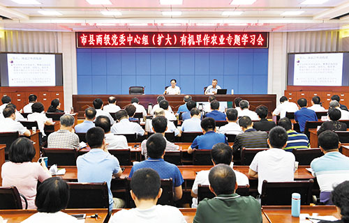 圖為市縣兩級黨委中心組(擴大)有機旱作農(nóng)業(yè)專題學(xué)習(xí)會會場。本報記者 劉紀(jì)森 攝