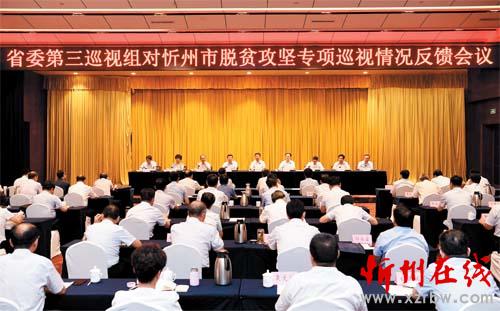 圖為省委第三巡視組對忻州市脫貧攻堅專項巡視情況反饋會議會場。
