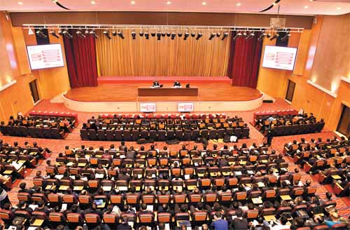 圖為我市學(xué)習(xí)貫徹黨的十九屆四中全會精神省委宣講團(tuán)報(bào)告會會場。本報(bào)記者 劉紀(jì)森 攝