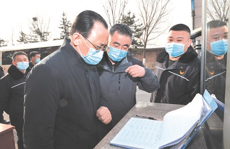 圖為2月20日,省人大常委會副主任、市委書記、市疫情防控工作領(lǐng)導(dǎo)小組組長李俊明在禹王煤炭氣化公司督導(dǎo)調(diào)研企業(yè)疫情防控、復(fù)工復(fù)產(chǎn)和重點項目建設(shè)情況。本報記者 宮愛文 攝