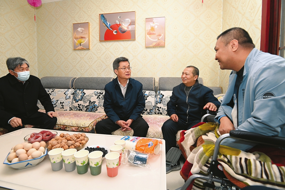 易地搬遷不僅讓群眾挪了窮窩、住上新房,更讓大家的精神面貌煥然一新。郝生偉、郝華君父子二人有不同程度殘疾,面對生活依然樂觀向上。藍佛安入戶了解他們的身體、生活狀況和享受救助政策情況。父子倆看到省委書記來了,你一言我一語表達著對黨和政府的感激之情。聽到郝華君希望開一間網(wǎng)店,力所能及地回報社會時,藍佛安高興地點贊。他動情地說,共產(chǎn)黨就是給人民辦事的,黨和政府始終是人民群眾的堅強依靠。大家在脫貧攻堅的路上沒有掉隊,在奔向現(xiàn)代化和共同富裕的路上,黨和政府也一定不會讓大家掉隊!藍佛安指出,社區(qū)黨員干部要厚植為民情懷,多關(guān)心弱勢群體,拿出更多針對性幫扶舉措,解決好群眾的急難愁盼問題,讓大家生活有靠、日子有盼、發(fā)展有機會。他強調(diào),要進一步完善黨建引領(lǐng)社區(qū)治理機制,建強服務(wù)陣地,更好地把政治優(yōu)勢、組織優(yōu)勢轉(zhuǎn)化為治理效能,以社區(qū)“微治理”撬動民生“大幸?!?。