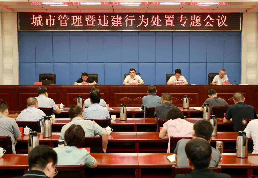 9月5日,市政府召開城市管理暨違建行為處置專題會議,就進一步提升城市規(guī)劃、建設和管理水平,深入持久做好違法建設行為防范處置工作進行再動員再部署再推進。市委副書記、市長李建國出席并講話,副市長王建峰主持,市政府秘書長張艮生出席。